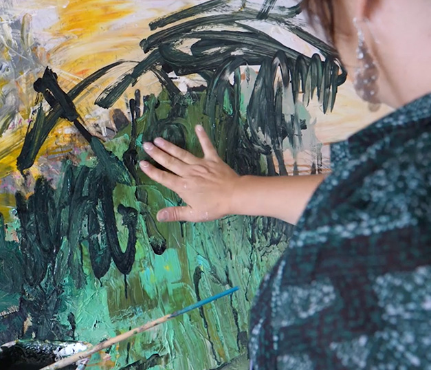 Stephanie Drugeon works on colors. She uses large formats giving free rein to act. A personal style, abstract, where the agreements provide all their energy. As in a game, contrasting colors vibrate and collide, the extremes resonate. From a canvas to another these agreements change, the game evolves, the paint is renewed? The multiple expressions of color, always identifiable, become an established language. The commitment remains the same. For this artist, painting is not only a thought, but a vision, an emotion. It’s world of abstraction, hers, that Stephanie Drugeon offers the viewer to see.