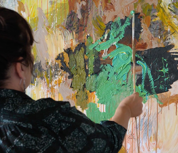 Stéphanie Drugeon travaille la couleur. Elle utilise de grands formats donnant libre cours au geste. Une écriture personnelle, abstraite, où les accords dispensent toute leur énergie. Dans un jeu contrastes les couleurs vibrent et s’entrechoquent, les extrêmes entrent en résonance. D’une toile à l’autre ces accords changent, le jeu évolue, la peinture se renouvelle ; les expressions multiples de la couleur toujours identifiables deviennent ainsi un langage créé. L’engagement reste le même. Pour cette artiste peindre n’est pas seulement une pensée mais une vision, une émotion. C’est tout un univers d’abstraction, le sien, que Stéphanie Drugeon donne à voir au spectateur.